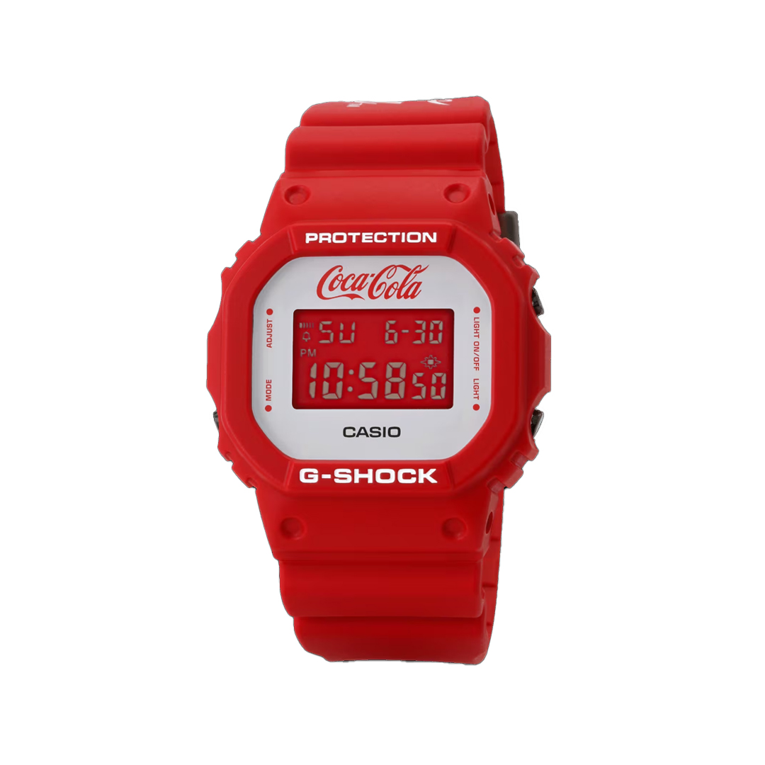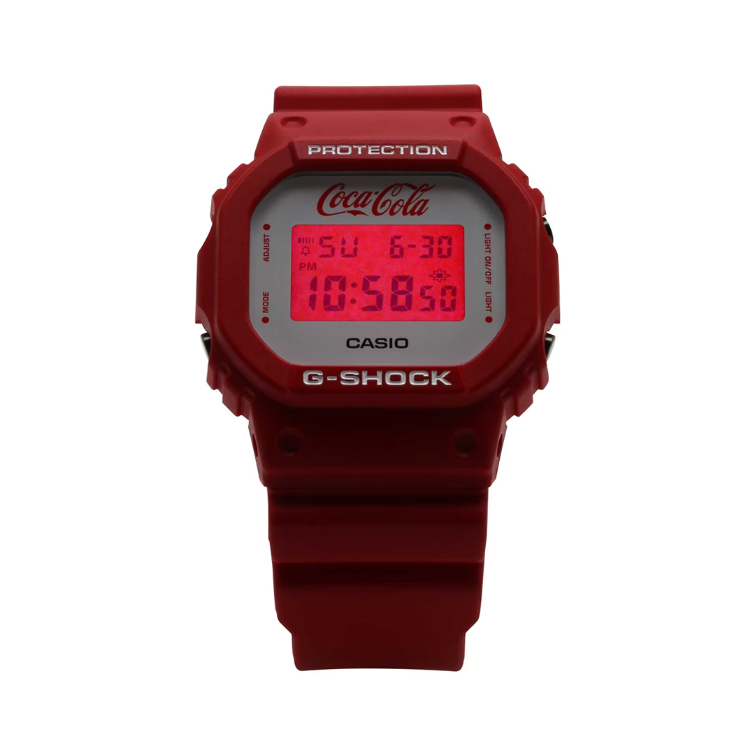 The DW5600CC23-4 combines Coca-Cola’s unmistakable red branding with the first-ever G-SHOCK silhouette, the DW5600, for a bold and striking design that combines G-SHOCK’s toughness and durability with Coca-Cola’s rich history and invigorating spirit.