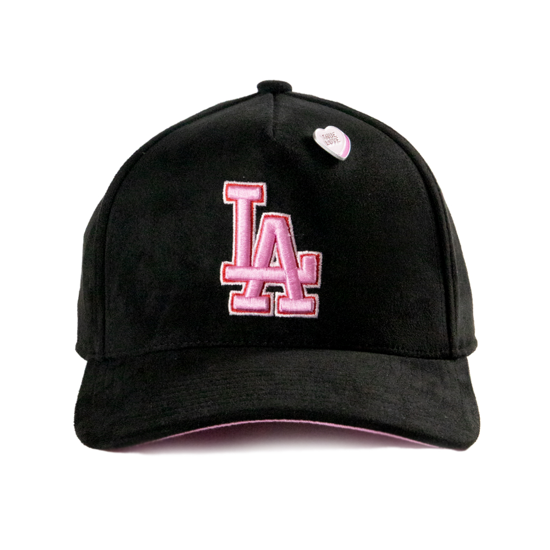 Suede feel, enamel heart pin, snap closure