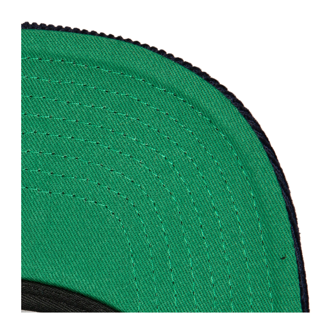 100% cotton crown and top visor. Contrast undervisor. Raised and flat embroidery front logo. Snap closure.