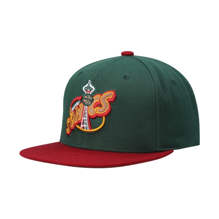 Mitchell & Ness Seattle Sonics Two Tone 2.0 Snapback Hat Dark Green Burgundy