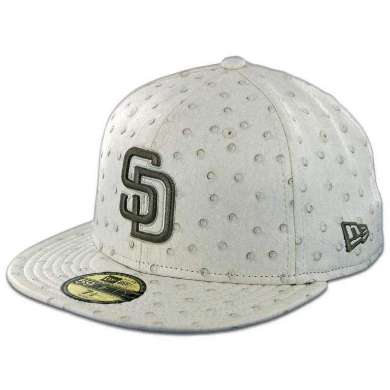 The Billion Creation 5950 San Diego Padres Ostrich Rock Fitted Hat is part of Billion Creation’s 2013 Custom Collection, created in collaboration with New Era’s design team. This San Diego Padres hat has an all over faux ostrich skin in white, with a taupe ostrich skin undervisor. Ostrich skin is better known for its use in high end fashion and design because of its unique and luxurious pattern. This is the first time we have had a hat in this material, but we definitely don’t think it will be the last.  There is a pewter embroidered “SD” logo on the front , with a matching New Era flag logo on the side. All of the hats that are part of the Billion Creation 2013 Custom Collection feature a gold satin New Era fabric on the inside front panels. All of the hats in our 2013 Custom Collection are Billion Creation original designs and available exclusively at our shop or on billioncreation.com.