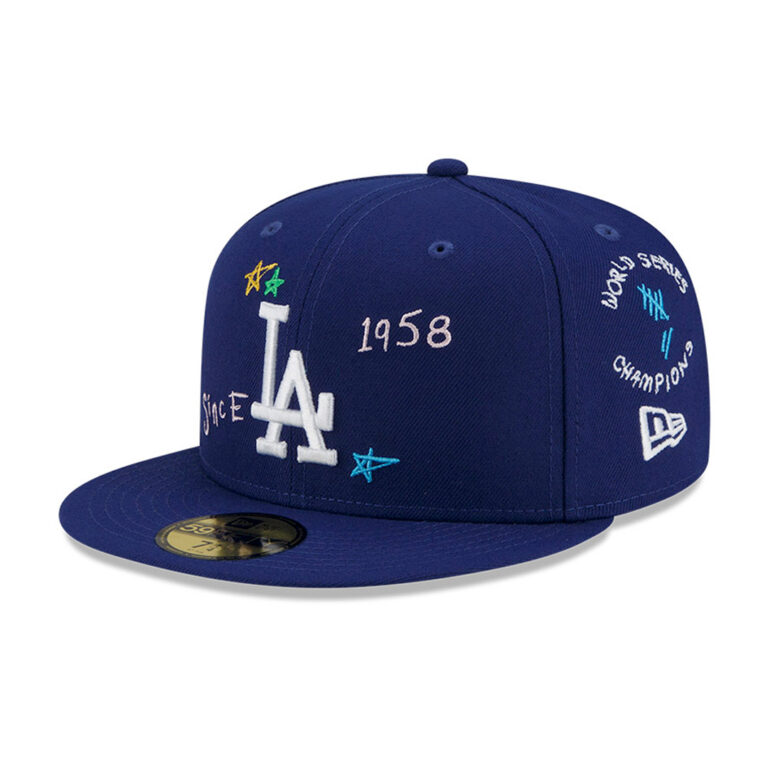 New Era 59Fifty Los Angeles Dodgers Scribble Fitted Hat Dark Royal Blue