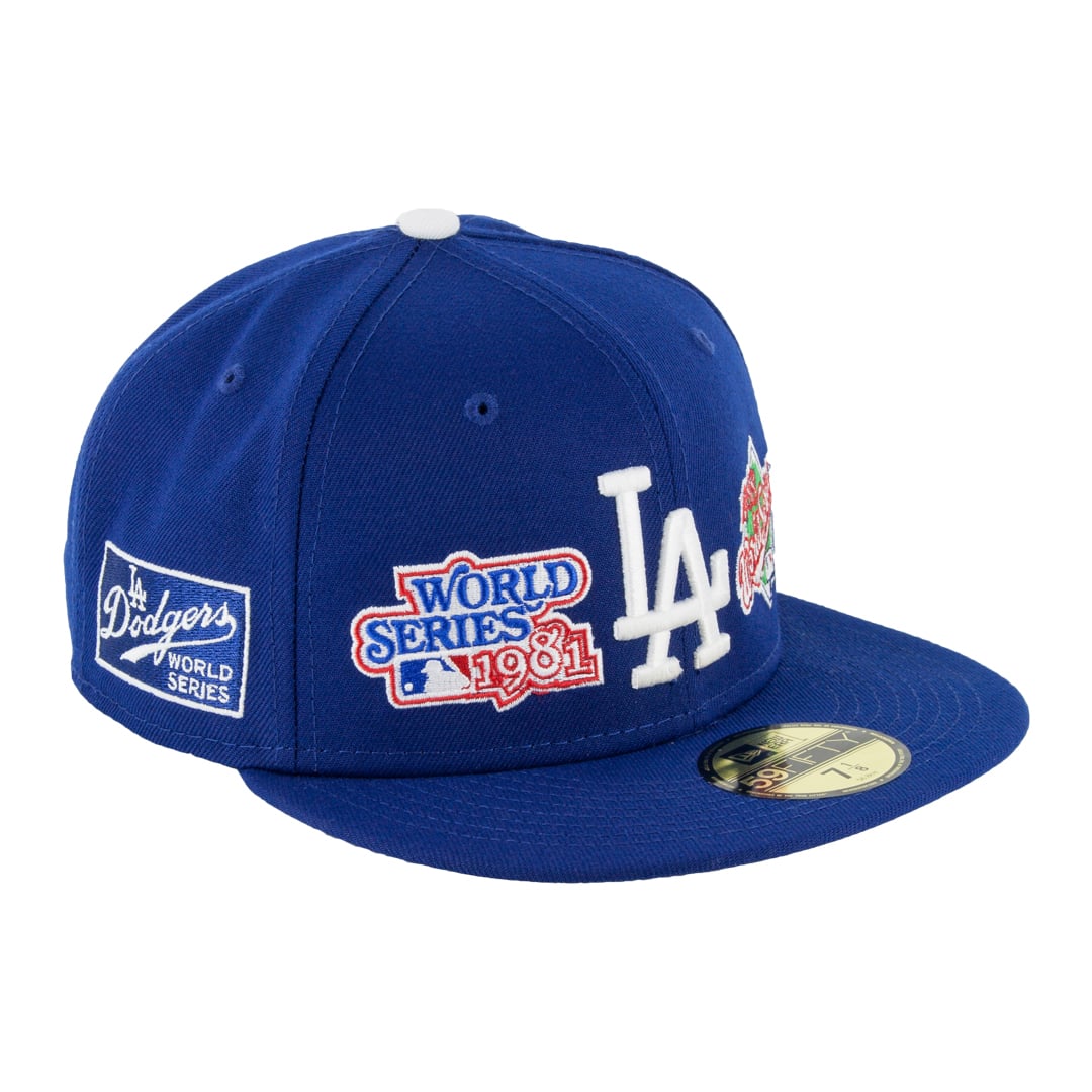 New Era 59Fifty Los Angeles Dodgers World Champions Patches Limited Edition Dark Royal Blue Fitted Hat