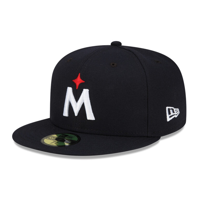 Get geared up with New Era’s AC Collection cap for the Minnesota Twins. This is the official Major League Baseball on-field Road Game hat worn by Twins players and engineered for victory. A 5950 fitted hat, with a standard New Era structured high crown and a flat visor, this cap is Dark Navy Blue, with a White and Red raised 3D embroidery Minnesota Star front logo, a White MLB Batterman back logo, and a White New Era NE flag logo on the left side. This hat is made from New Era performance fabric, offering shrink resistance, moisture wicking and UPF50 sun protection. This is a 100% polyester hat.