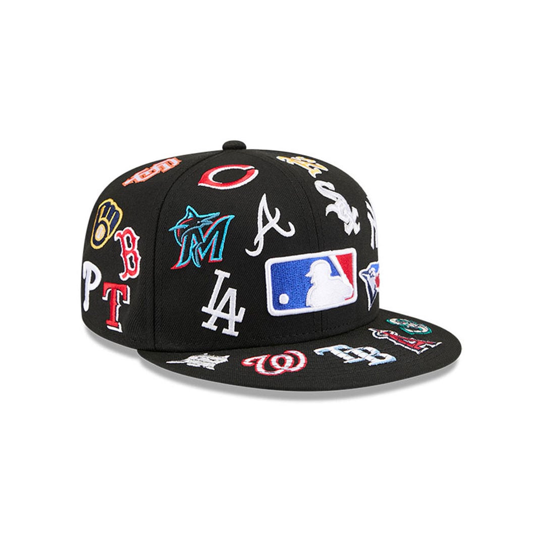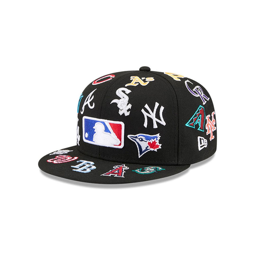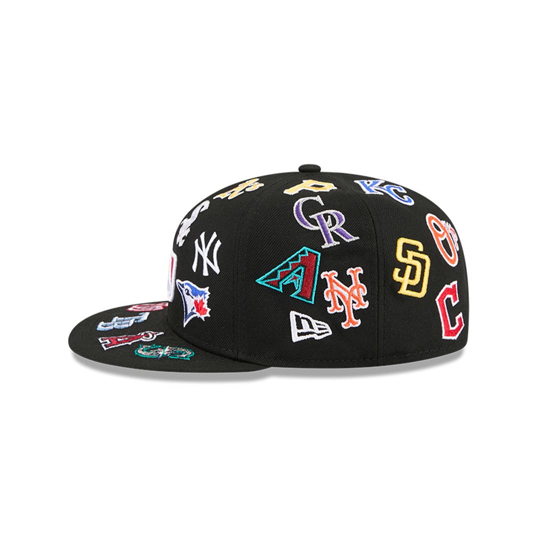 New Era 59Fifty MLB All Over Teams Logos Fitted Hat Black