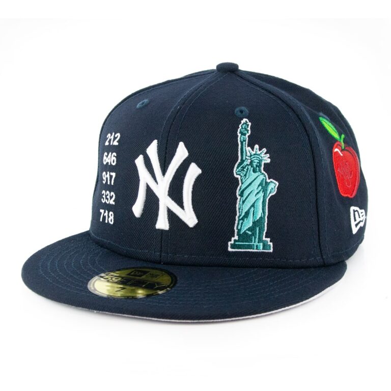 This is a limited edition New York Yankees Local fitted hat. Representing the 212, 646, 917, 332, 718 and the Empire State of mind. This New Era 5950 fitted hat is loaded with images representing The City, including the Statute of Liberty on the front, 1996 World Series Patch, a boom box, NY style slice of pizza and of course, The Big Apple. This is a Dark Navy Blue hat with a grey undervisor. From Brooklyn to the Bronx, Long Island to Staten Island, represent NYC.