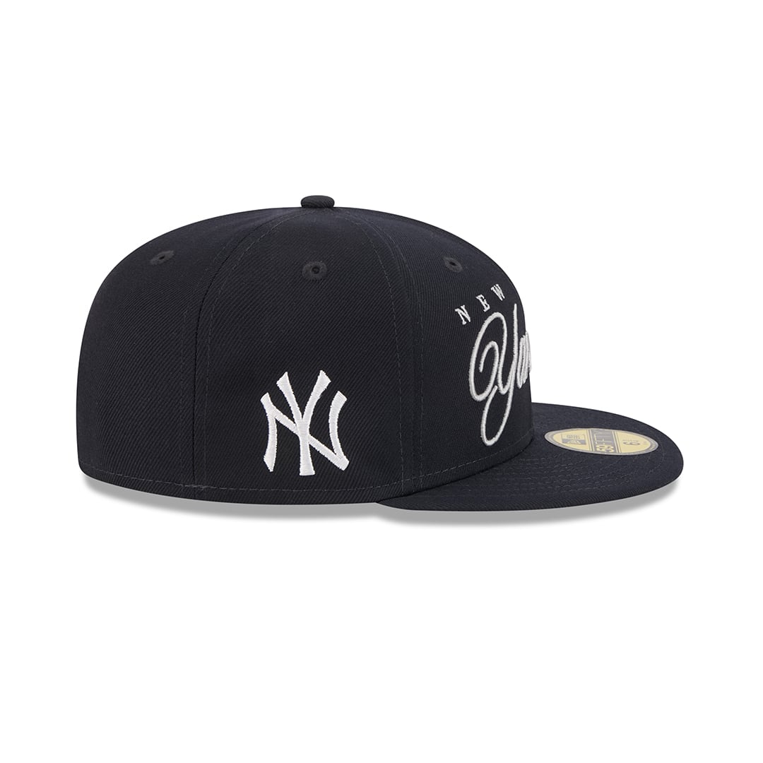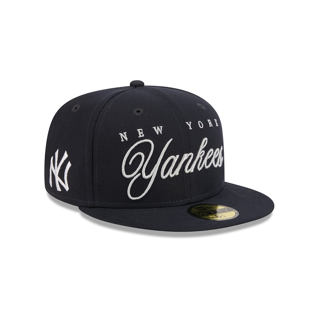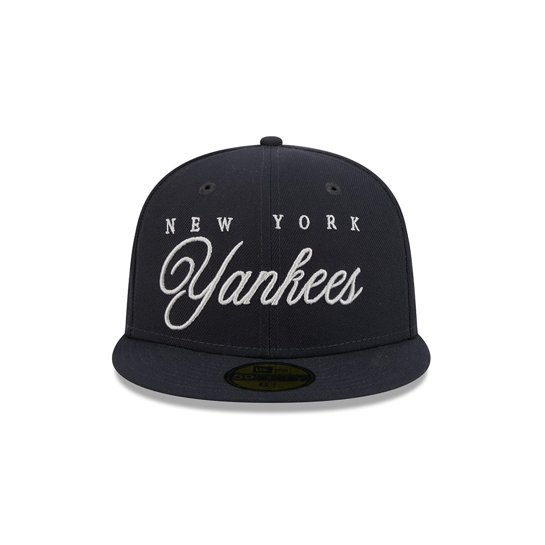 New Era 59Fifty New York Yankees Scripted Fitted Hat Dark Navy White