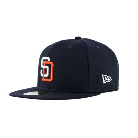 Go back in time to 1991 with the San Diego Padres Cooperstown Collection hat by New Era. This is a 59Fifty fitted cap in dark navy. Undervisor is gray. Front logo is the 1991 white and orange interlocking SD logo. Back logo is the MLB Cooperstown Batterman logo.