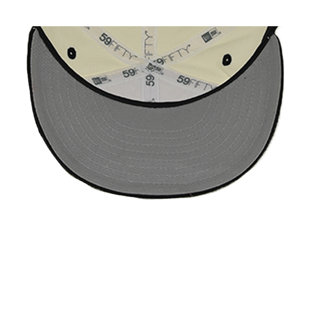 Keeping true to our roots, The SD Padres Aztec fitted hat is a celebration of our cultural heritage. This is a chrome white cap with a black visor and black eyelets. Front SD logo is in black and red. Aztec calendar sidepatch done in black red and metallic gold. Cooperstown Batterman logo embroidered on back round out this design. Gray undervisor.