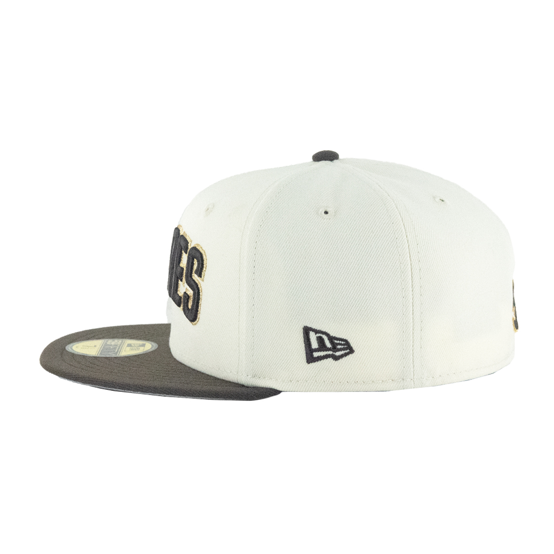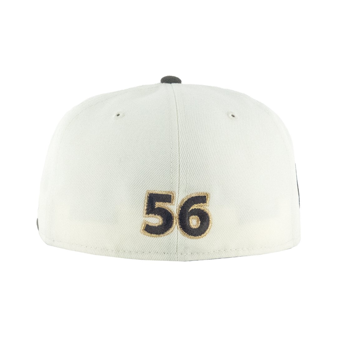 Celebrate two decades of Petco Park in style with this exclusive New Era 59FIFTY fitted cap. Featuring bold PADRES lettering across the front, this hat pairs a clean chrome white crown with a contrasting brown visor for a timeless look. The right side proudly displays the 20th Anniversary Petco Park patch, while the back showcases the number 56 in striking embroidery, in honor of Jeremiah Estrada.
