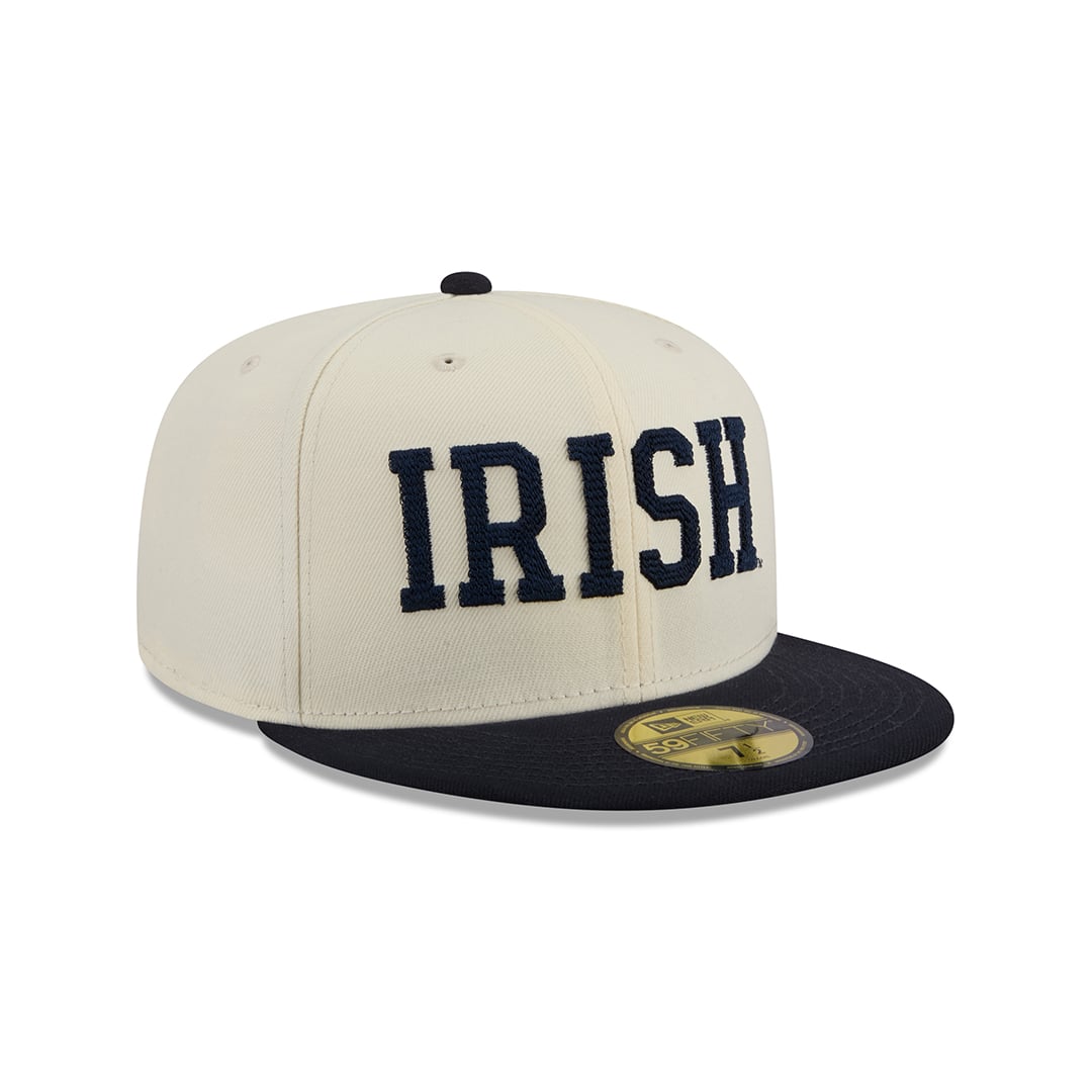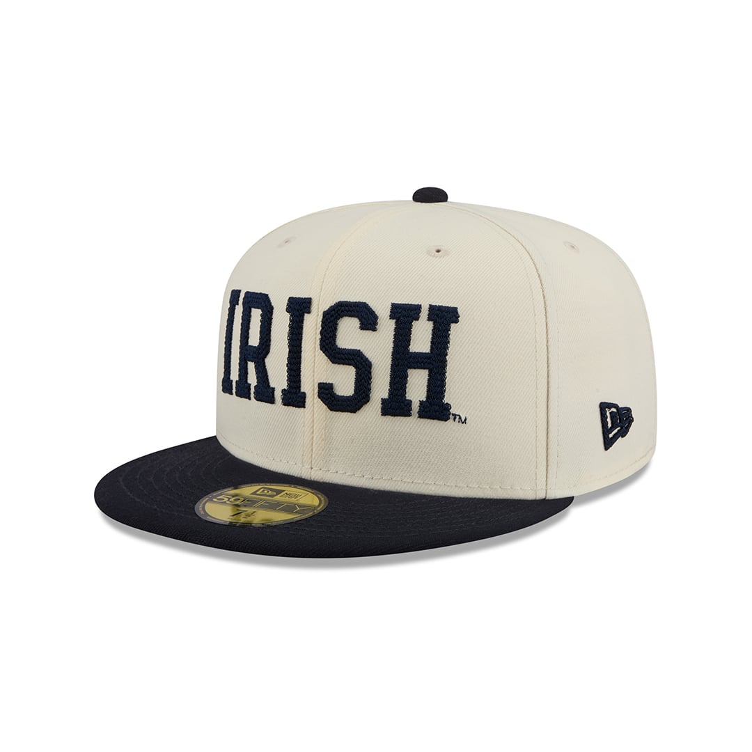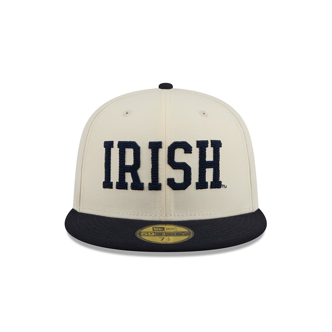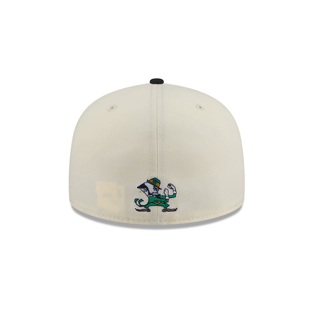 New Era 59Fifty University of Notre Dame Fighting Irish 2T Chain Stitch Fitted Hat Chrome White Blue