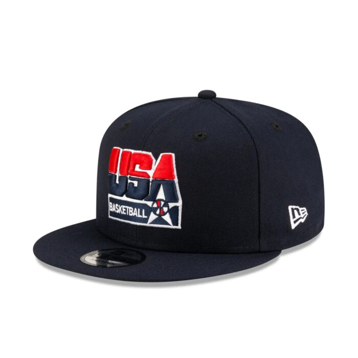 This New Era 9FIFTY Snapback in bold Dark Navy celebrates the greatest basketball team ever assembled. The structured fit and adjustable snap closure give you all-day comfort, while the crisp USA Basketball logo is pure red, white, and blue nostalgia.