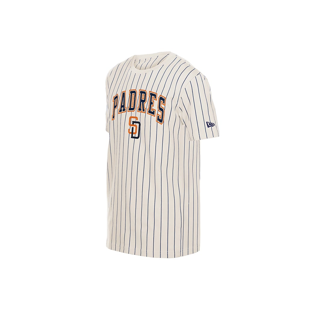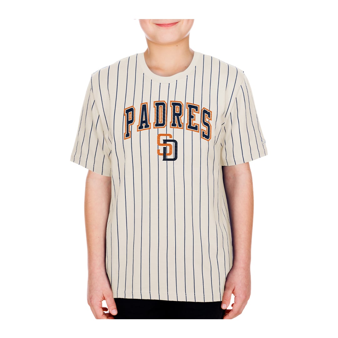 New Era San Diego Padres 2026 City Connect Pinstripe Jersey Youth Short Sleeve T-Shirt Cream Blue Pinstripe