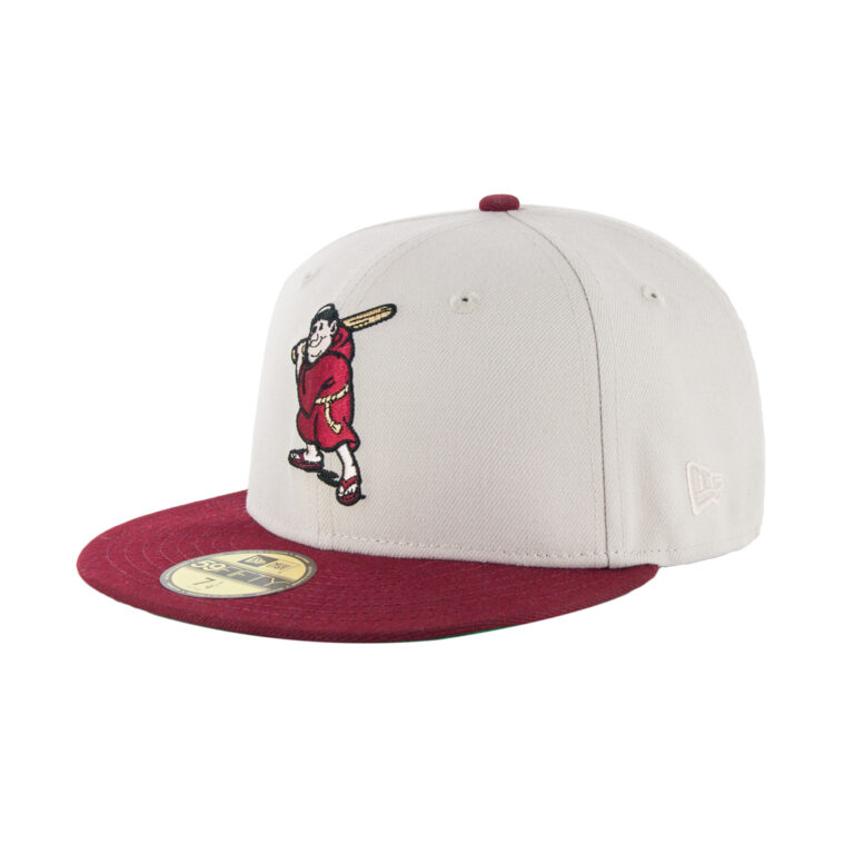 In another amazing collaboration with the San Diego Hat Collectors, we bring you the Batting Friar in Stone Gray and Cardinal. We dug deep into the vault for this one to bring an truly old school design to life. The front logo is a rarely seen version of the Padres Friar logo in a batting stance. This New Era 5950 fitted San Diego Padres cap is done in stone gray for the crown, cardinal red visor, and a traditional kelly green undervisor. The front logo is a matching cardinal red Batting Friar. MLB Batterman logo is on the back and New Era flag logo is on the left side. The right side patch is a vintage Padres Western Division National League logo, done in cardinal red, white, and metallic gold.