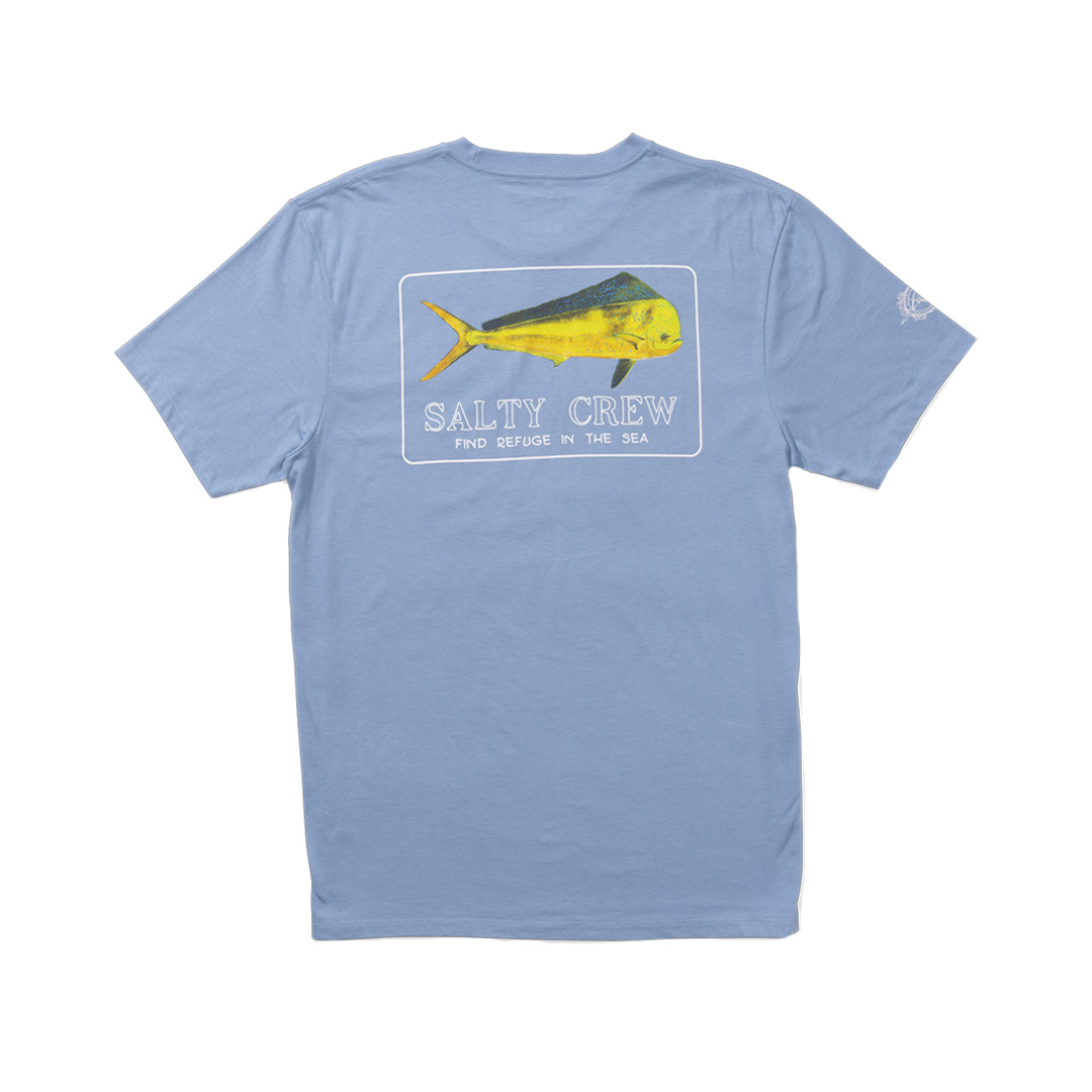 Dive into comfort and style with the Salty Crew Golden Mahi Short Sleeve T-Shirt. This marine blue tee features a bold graphic showcasing the majestic golden mahi, capturing the essence of the open ocean. Crafted from soft, durable cotton, it’s perfect for everyday wear, whether you’re on the water or kicking back on shore. Show off your passion for the sea with this essential Salty Crew piece.