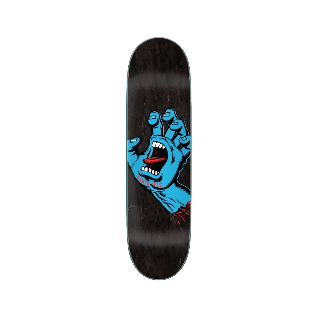 Santa Cruz Skateboards Screaming Hand graphic deck on 7 ply North American Maple pressed individually using epoxy making a strong, responsive deck with long lasting pop and consistent concave and kick, topped off with our signature matte finish.